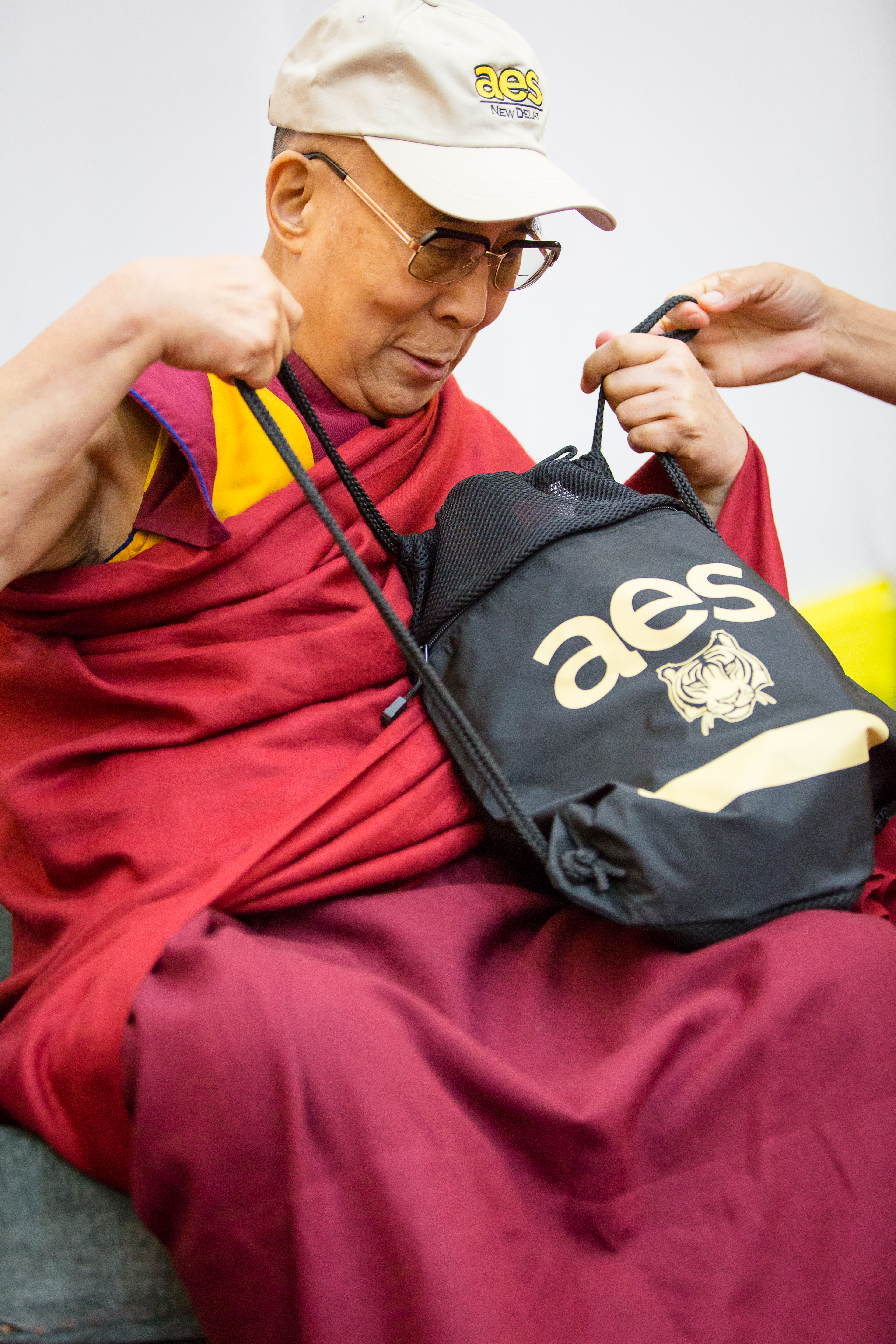 With a translator standing by, he peppered his speech with funny anecdotes, often cracking himself up and pausing for a deep chuckle. He told of being a lazy student when he was young and tutored, along with his older brother, by a teacher who had two whips: a regular whip and a “yellow whip, a holy whip for holy student, Dalai Lama. I think holy pain is same as regular pain,” he laughed.
