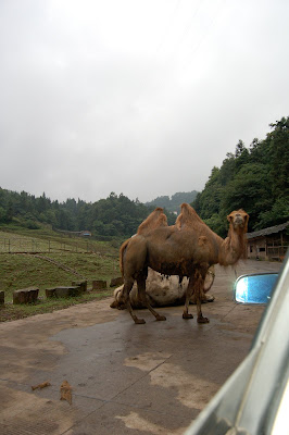 “No, in front of the car, there’s a camel,” she said. And, indeed, there was. Apparently there’s a depressing little zoo on the way to the panda reserve.