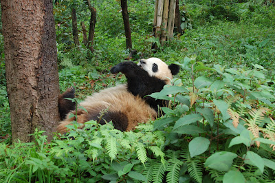 After lunch, we walked back across the street and took a tram to see the juvenile pandas. There were seven pandas in two enclosures. They’re not the most exciting animals in the world, but their mannerisms are so human that it’s easy to anthropomorphize. Cath and I laughed at how much they reminded us of one particular lazy student we had at SAS (who shall remain unnamed here!). The pandas gobbled up vitamin cakes brought by a caretaker and then rambled about, lay down, got up, sat for awhile, lay down again, rolled over, and more of the same.