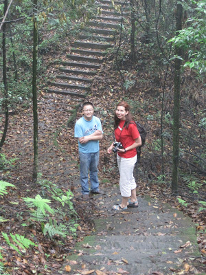 Deng Li said we could walk to see the baby pandas, but it turned out he didn’t really know the way. We found a trail with a sign pointing to the “Panda Kindergarten,” so we set off through the drizzly mist. The trail took us up and down rocky steps slick with wet leaves. The steep mountainous forest was thick with bamboo and ferns, and Deng Li pointed out that this was the real habitat of wild pandas. Considering that there are only about 1,600 giant pandas left in the wild, it was no surprise that we didn’t see any.