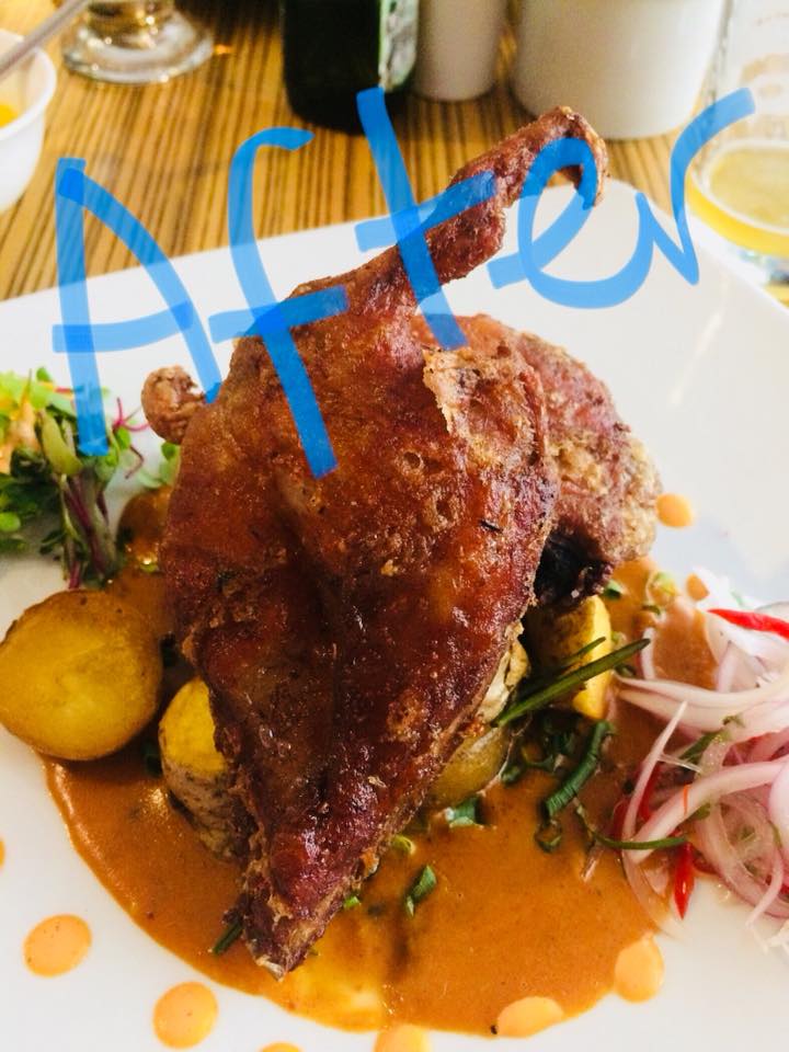 Our absolutely dreamy dinner at Cicciolina was the perfect ending to this Peruvian vacation, where we found fantastic food at every stop. I’m cracking up in this photo because the waiter was nearly sitting in another diner’s lap to get the shot. You can see him reflected in the mirror behind us. Hysterical!
