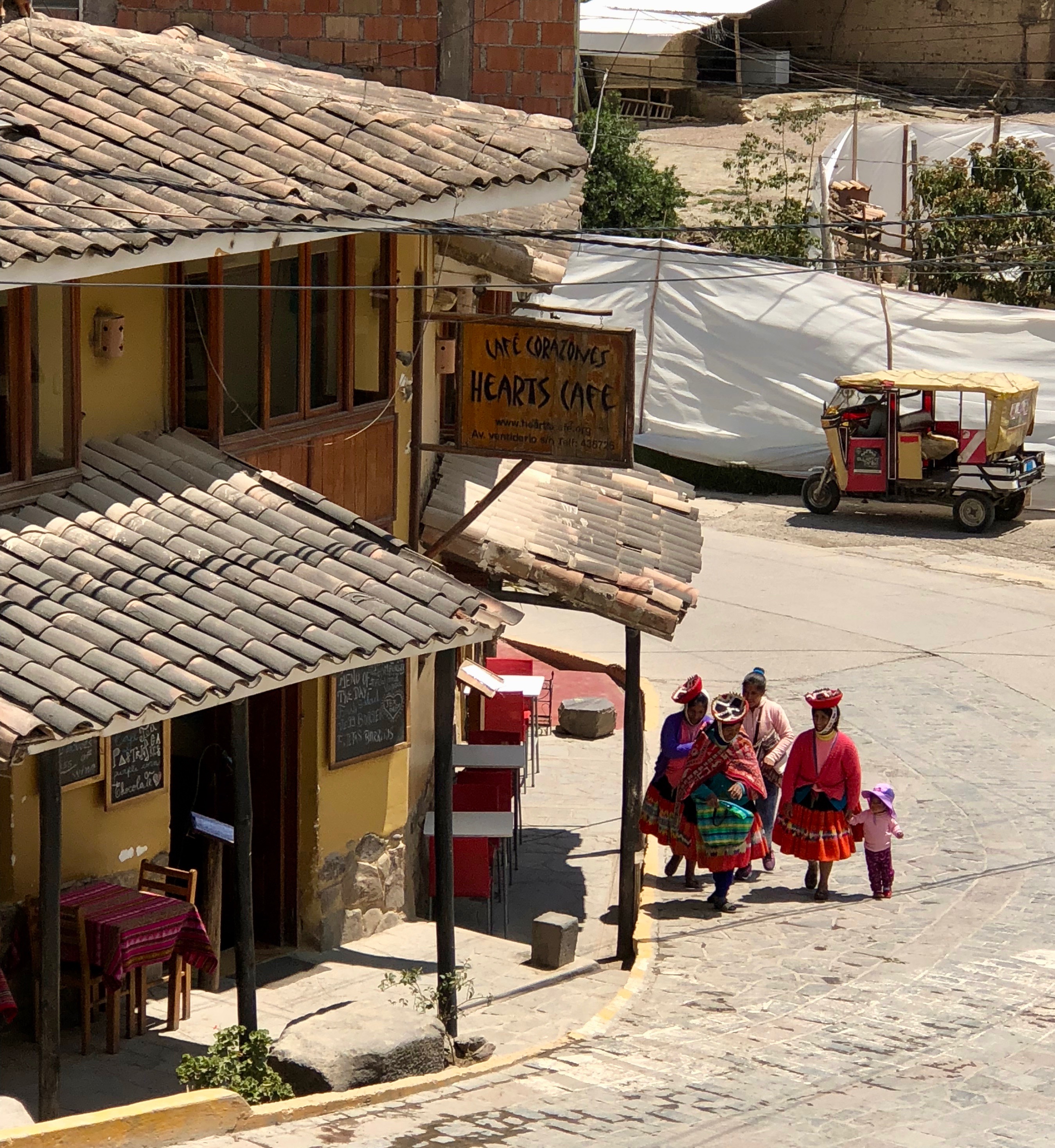 We had planned to visit the town of Chinchero, but we were getting tired and hungry. We decided to skip it. Our driver noted that an Andean crafts market in the Chinchero District was on the way to Cusco. Did we want to stop there? Yes, please!